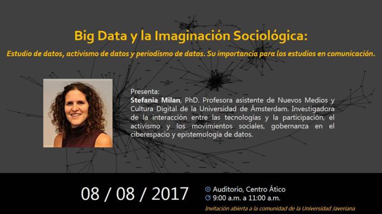 On August 8, 2017, Stefania will give a talk at the Universidad Javeriana in Bogotá, Colombia, with the title ‘Big Data y la Imaginación Sociológica. Estudio de datos, activismo de datos y periodismo de datos. Su importancia para los estudios en comunicación”. The event will take place at the Auditorio, Centro Ático, at 9am.